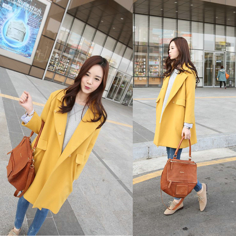熱賣秋冬裝新款韓版休閑修身中長款羊毛呢外套長袖女裝呢子 /
