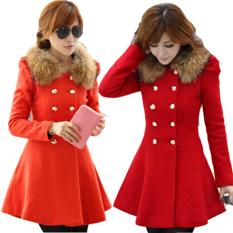 新品熱銷推薦女裝毛呢外套韓版羊毛領(lǐng)雙排扣大衣 /