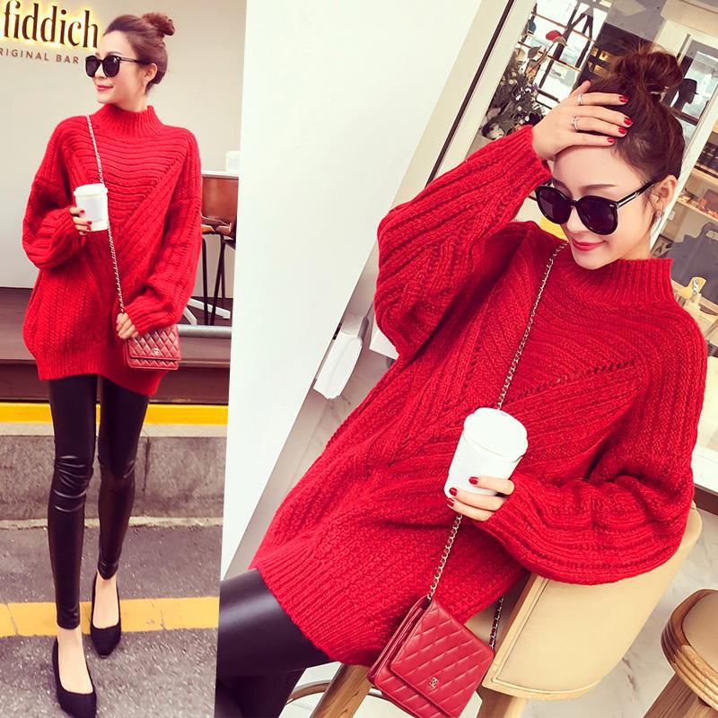 2015冬裝新款女裝韓國(guó)加厚V型寬松顯瘦半高領(lǐng)套頭毛衣女 /