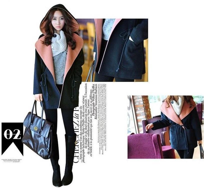 2015秋冬妮子大衣女韓國(guó)時(shí)尚連帽女士毛呢外套呢子大衣現(xiàn)貨 /