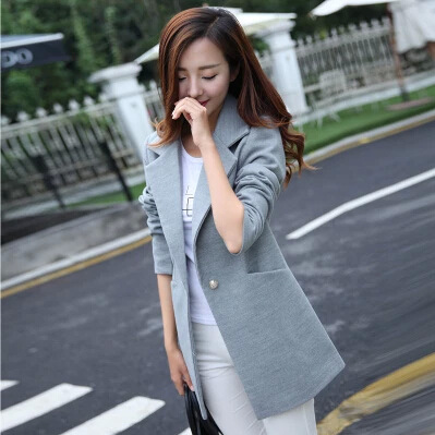秋冬季新款韓版女裝中長(zhǎng)款毛呢外套女式西裝領(lǐng)大碼呢子大衣 /