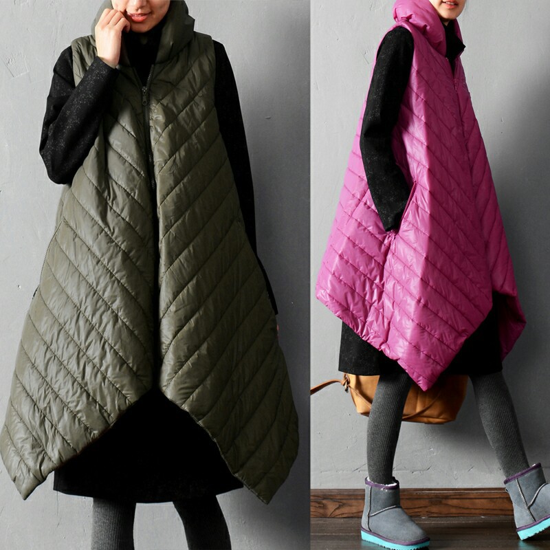 2015秋裝新款寬松大碼日系個性立領(lǐng)休閑純色不規(guī)則下擺棉馬甲秋冬 /