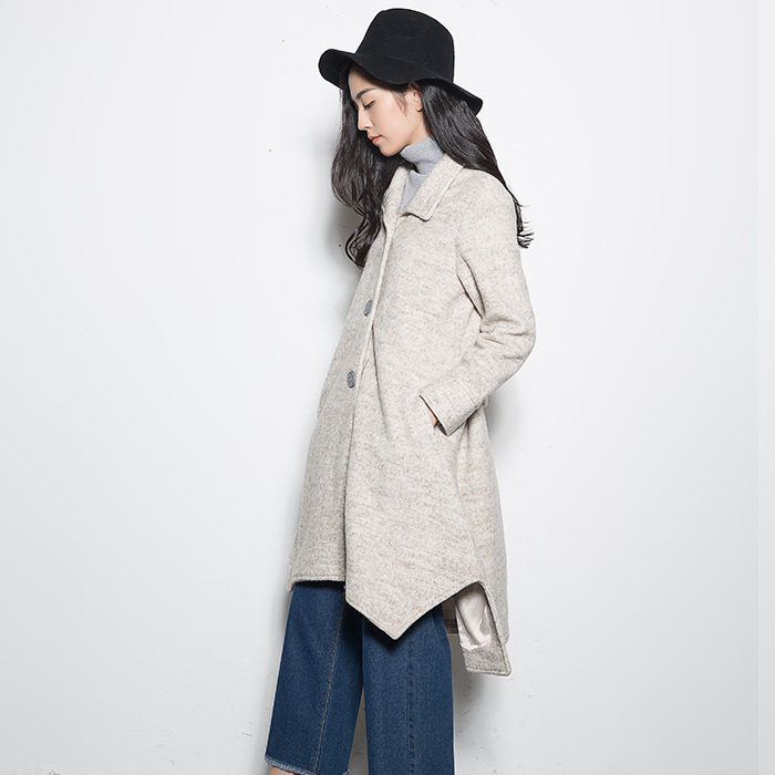 冬裝新款寬松大碼日系純色翻領(lǐng)中長款燕尾羊毛呢外套呢大衣1951 /