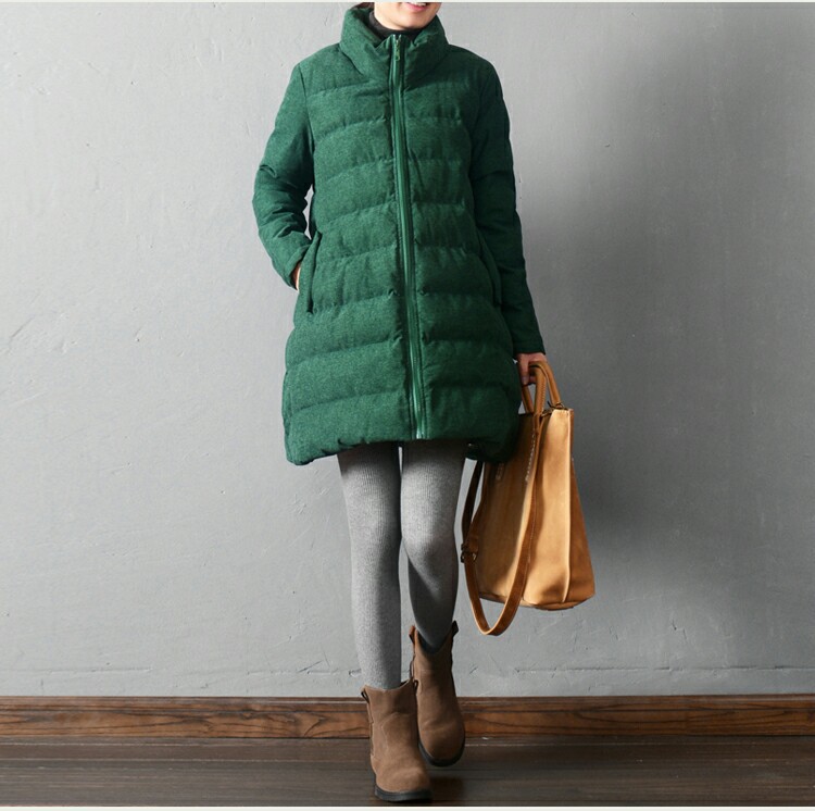 2015冬裝新款寬松純色文藝加厚夾棉棉衣立領(lǐng)保暖中長款棉服大衣冬 /