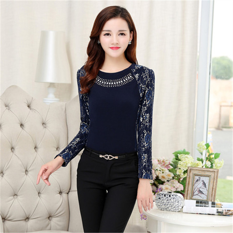 韓版2015冬季新款女裝上衣加絨加厚修身顯瘦中長(zhǎng)款純棉打底蕾絲衫 /