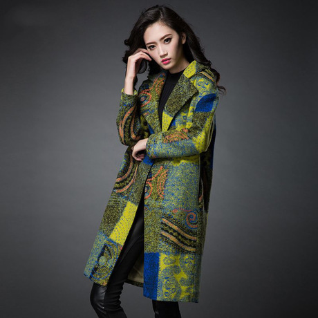 毛呢外套女中長款潮 花詩錦寬松繭型廓形時尚呢子妮子大衣冬2015 /
