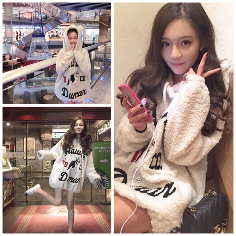 新款潮牌網(wǎng)紅同款 暖心萌神羊羔毛長款衛(wèi)衣絨衣 /