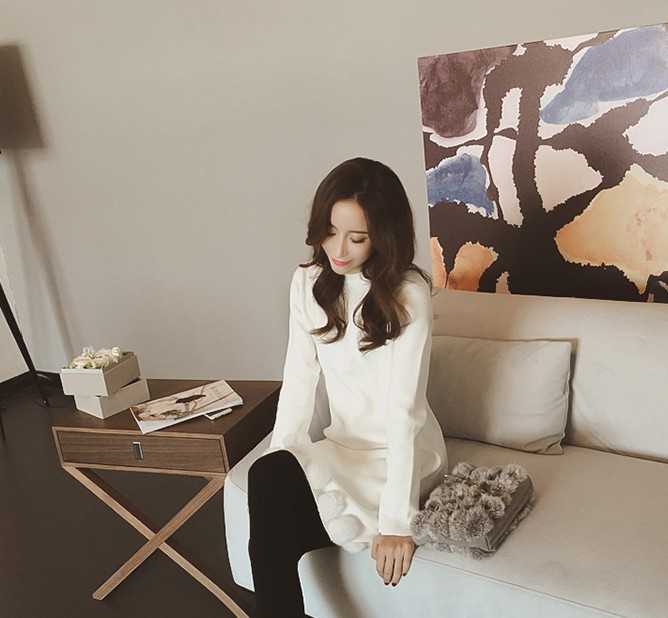 2015冬季女裝新款韓版下擺毛球中長款加厚針織連衣裙打底衫 /