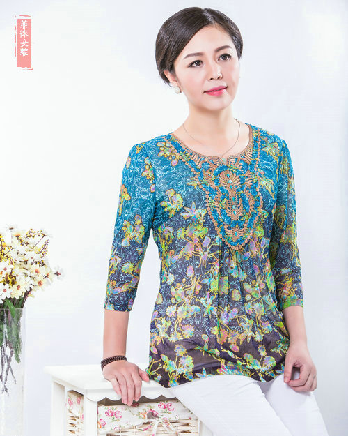 代理加盟一件代發(fā)中老年媽媽裝35-55婦女藍(lán)綠臺灣網(wǎng)紗襯衫D060-3 /