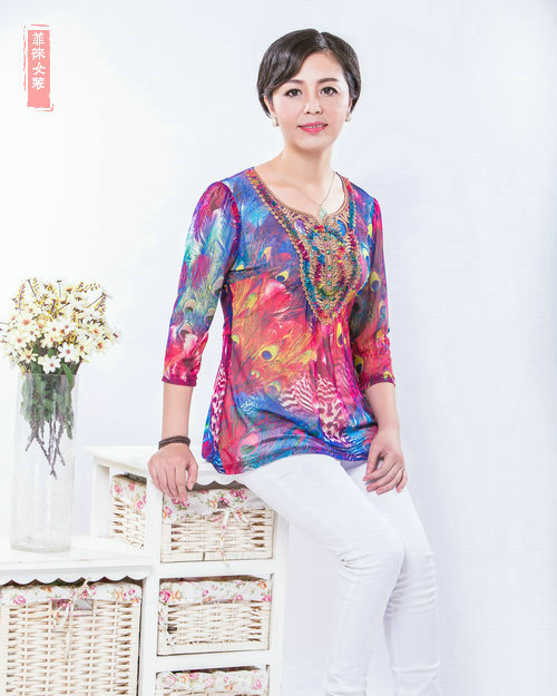 批發(fā)媽媽裝2015秋裝紅咖菲徠凱斯曼華曼妮祥麗鴻隆糜絲南夕D060-3 /