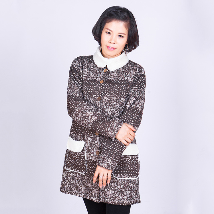 秋冬新款復古文藝碎花外套優(yōu)質棉麻女式中長款外套端莊優(yōu)雅外套女 /