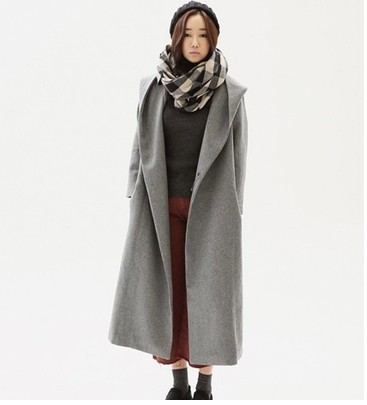 2015冬新款歐美BF風(fēng)超長款Oversize大碼連帽加厚羊毛呢大衣 /