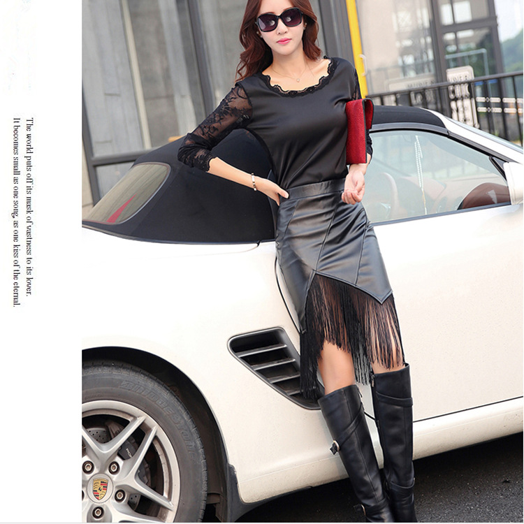 2015春秋爆款黑色性感氣質(zhì)pu皮短裙包臀裙歐美時(shí)尚流蘇裙子半身裙 /