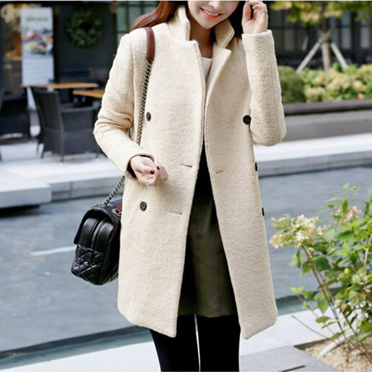 2015秋冬韓版女裝修身顯瘦雙排扣中長(zhǎng)款羊毛呢外套毛呢大衣女 /