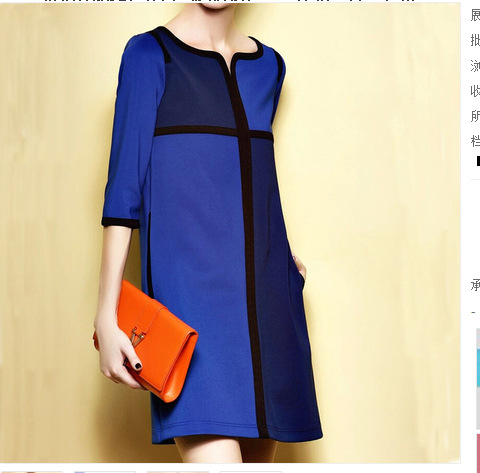 2015年爆款韓版寬松氣質(zhì)撞色七分袖直筒連衣裙 /