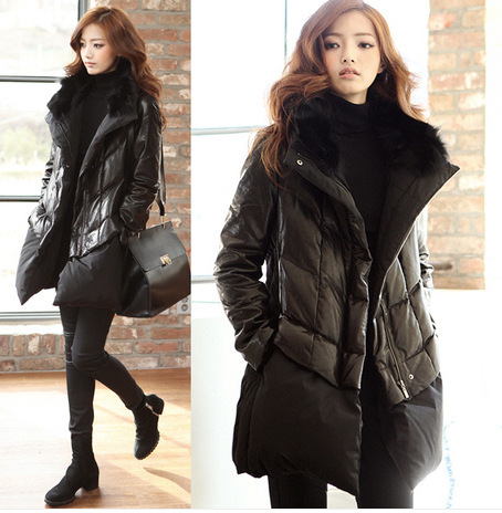 胖mm冬裝加厚加肥加大碼女裝PU拼接毛領(lǐng)羽絨棉服胖妹妹外套棉衣 /