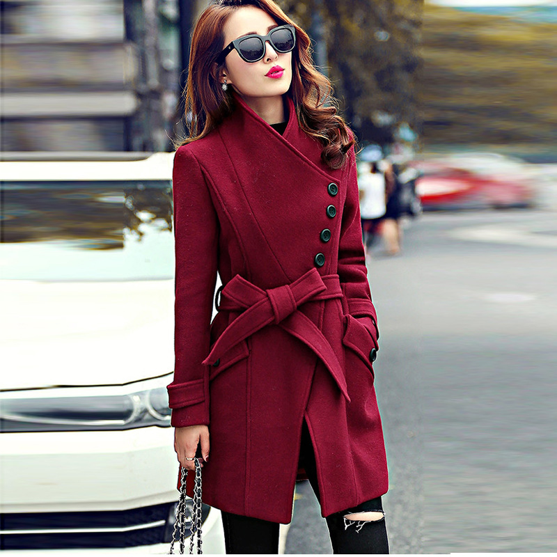 中長款毛呢外套女 2015女裝秋冬裝新款厚上衣 韓版長袖呢子大衣 /