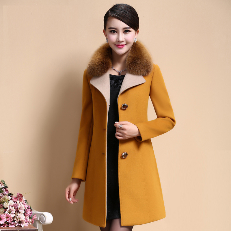 羊絨大衣女秋冬2015新款高端大牌中長款毛呢外套羊毛狐貍毛領(lǐng)冬裝 /
