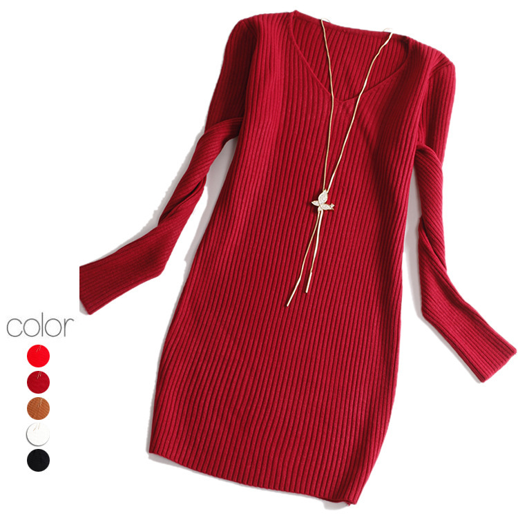 15秋冬保暖V領中長款螺紋針織打底衫 修身顯瘦針織衫毛衣女士682 /