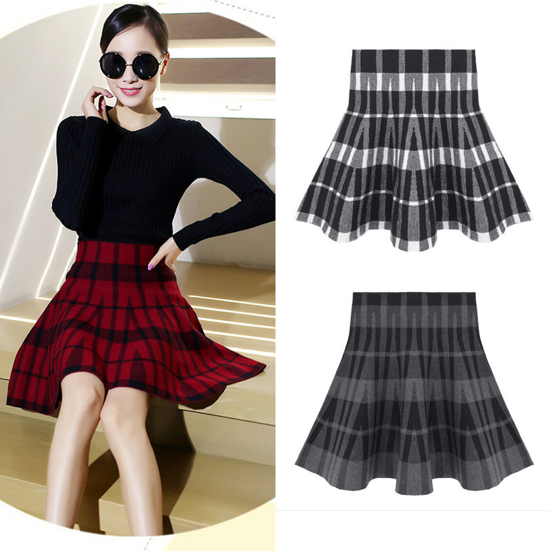 2015春季新款韓版時(shí)尚修身高腰A字裙英倫格子裙學(xué)生打底裙女潮 /