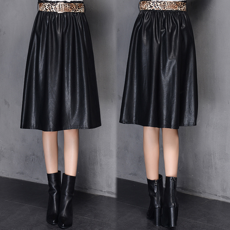 百褶荷葉邊半身裙高腰收腹裙子韓版大碼新款拼接束腰PU皮裙女潮 /