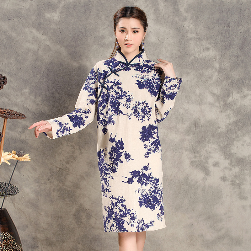925#2015秋冬棉麻復(fù)古民國風(fēng)古典旗袍手工盤扣上衣女裝裙衣 /