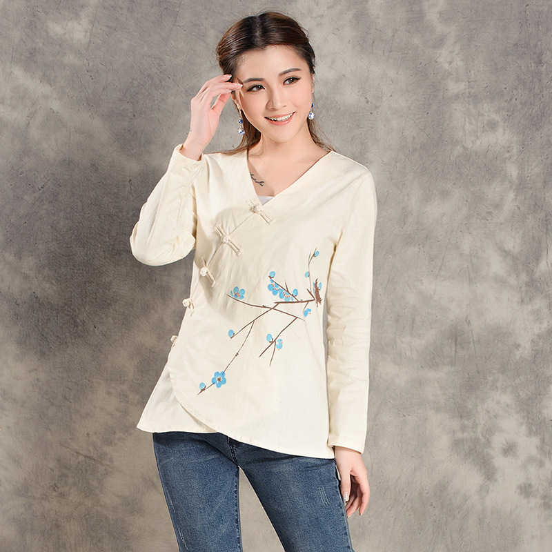 8022#中式改良長袖唐裝女款秋季中國風(fēng)民族風(fēng)女裝漢服茶服旗袍上 /
