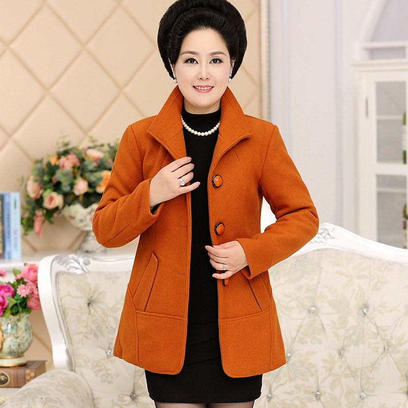 大碼秋冬女裝新款時(shí)尚年輕媽媽裝羊毛呢外套中年婦女休閑呢子外套 /