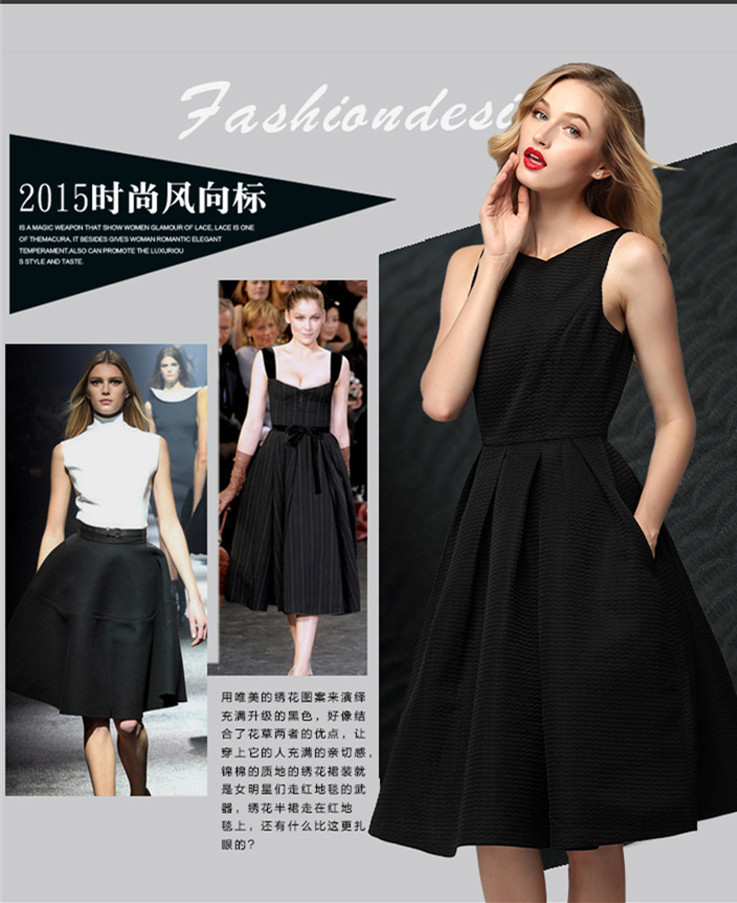 歐洲大牌2015秋冬季新品連衣裙女裝大擺經(jīng)典赫本風小黑裙 /