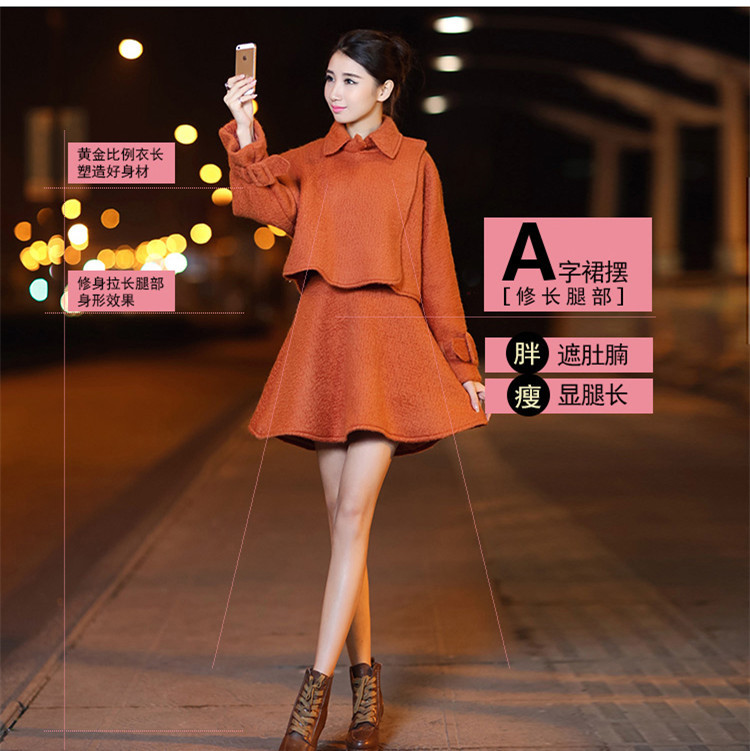 簡介: 貨源類別訂貨 主圖來源其他來源 風格甜美 圖案純色 工藝高溫定型 產(chǎn)地廣州 款式基本款 組合形式兩件套 裙長中長裙 面料名稱毛呢 主面料成分棉 主面料成分的含量85(%) 最快出貨時間8-15天 顏色橘色 尺碼S,M,L,XL