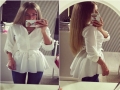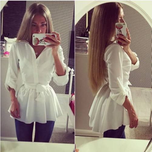 2015 歐美新款雪紡衫襯衫布蘭卡前短后長繃帶性感上衣 /