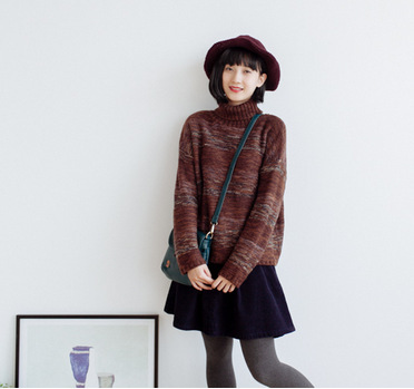 森女系復(fù)古文藝花線高領(lǐng)寬松針織打底毛衣 秋冬新款 /