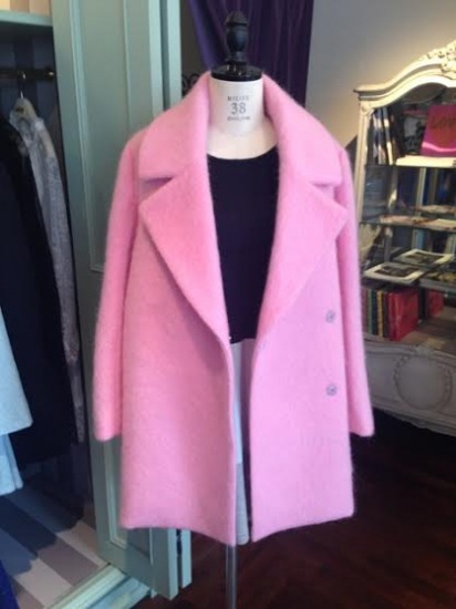 女裝冬vivi同款大衣S家甜美翻領中長簡約羊絨粉紅色毛呢外套包郵 /