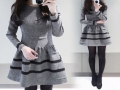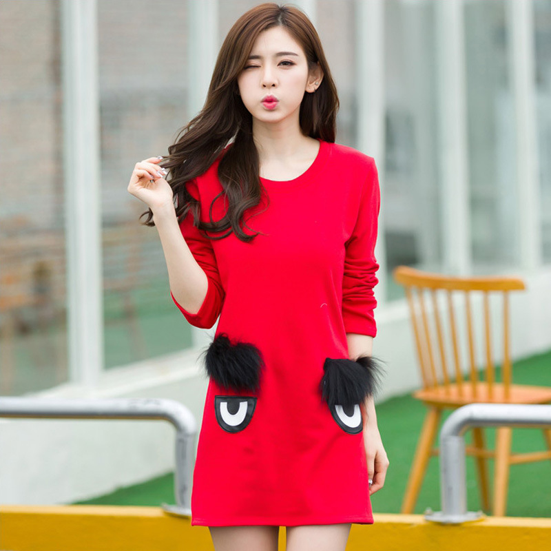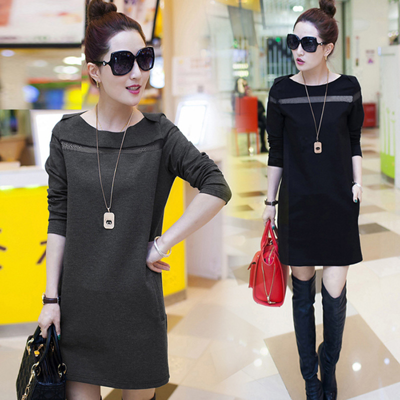 2015秋裝新款韓版女裝修身顯瘦大碼圓領(lǐng)加厚裙子長袖大連衣裙女 /