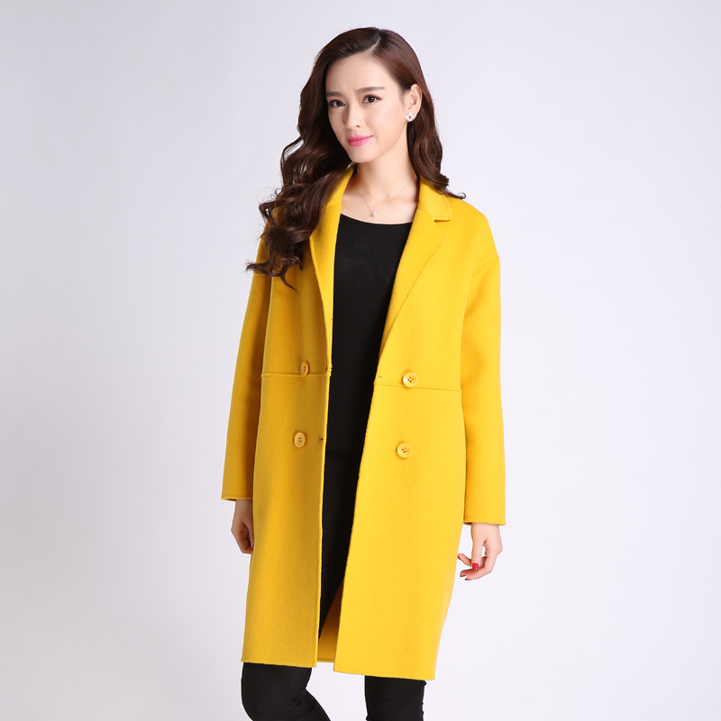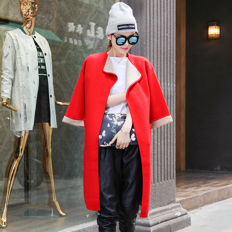中長款直筒純色翻領(lǐng)大衣 韓國東大門潮流時(shí)尚秋冬新品雙面呢大衣 /