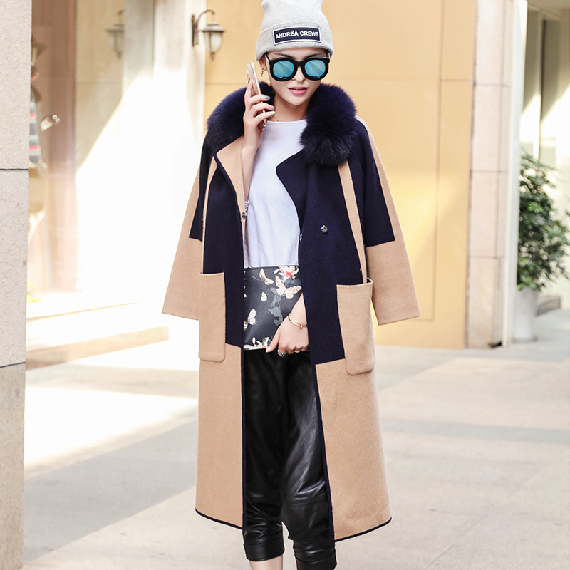 歐洲站 2015冬季新款女式大衣 時(shí)尚拼色長款直筒型貂絨大衣 /