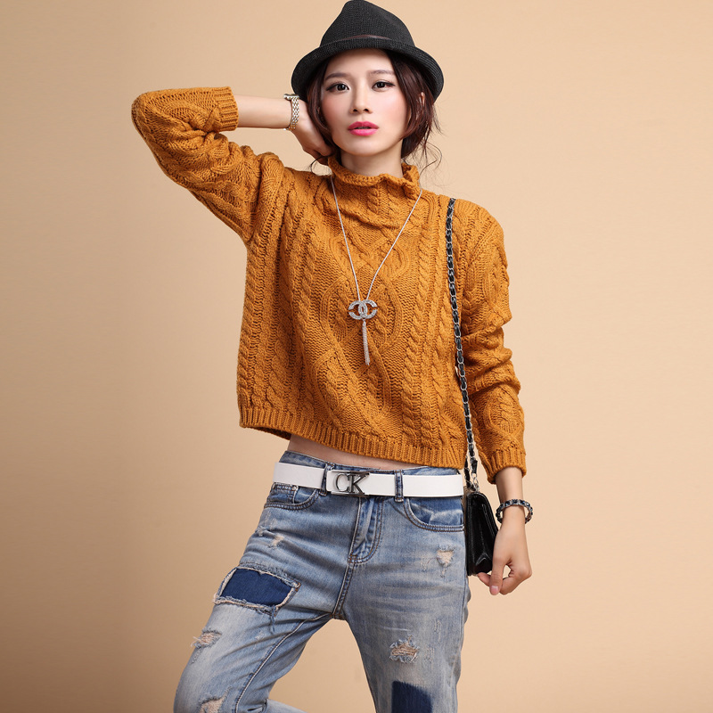 2015秋裝羊毛衫 女東大門半高領(lǐng)寬松純色短款毛衣女 針織衫批發(fā) /