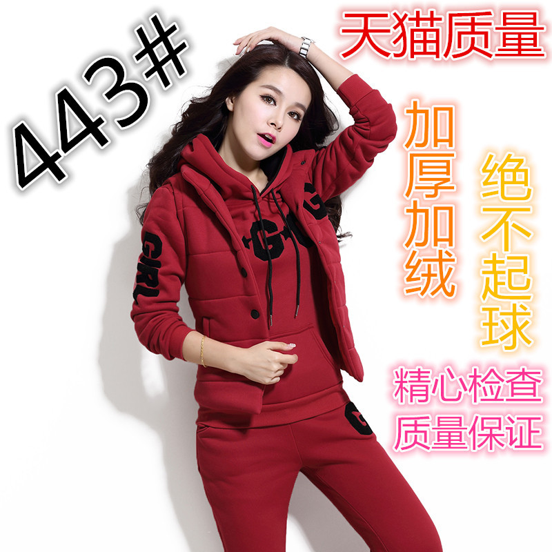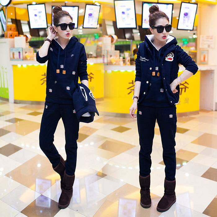 女裝加絨加厚學(xué)生連帽套頭衛(wèi)衣三件套大嘴猴運(yùn)動(dòng)休閑套裝 /