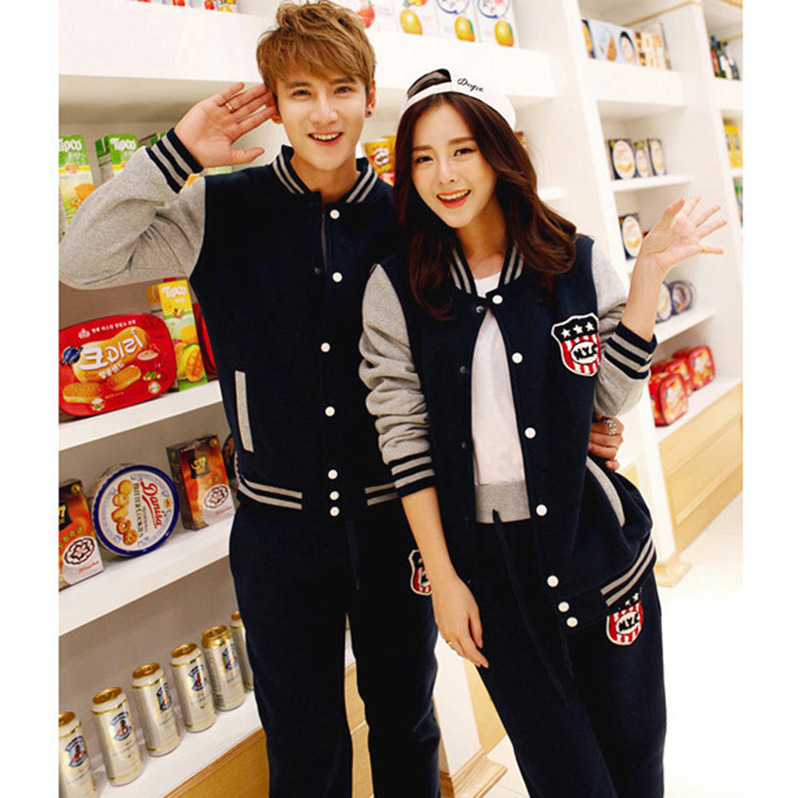 2015春秋新款韓版修身情侶棒球衫運(yùn)動(dòng)套裝 /