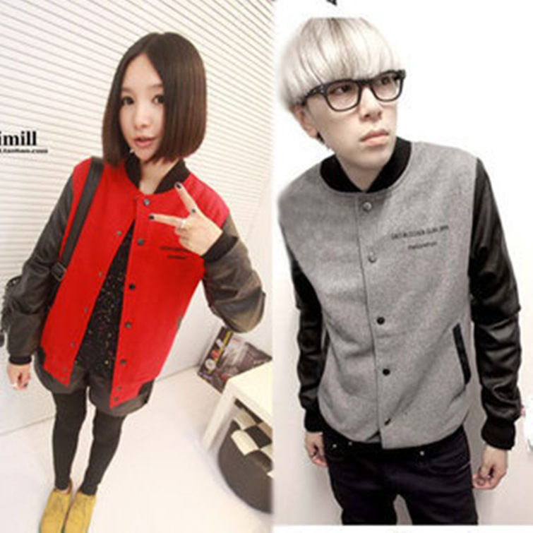 2014春季新款 刺繡拼皮袖眼睛大碼衛(wèi)衣棒球服 情侶衛(wèi)衣 /