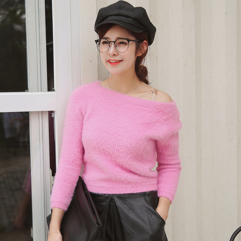 2015秋冬新款韓版百搭圓領(lǐng)套頭純色海馬毛長袖修身針織毛衣女 /