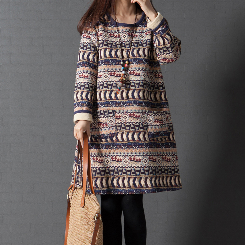 2015 秋冬新款女裝文藝棉麻大碼寬松復(fù)古 休閑連衣裙加厚衛(wèi)衣 /