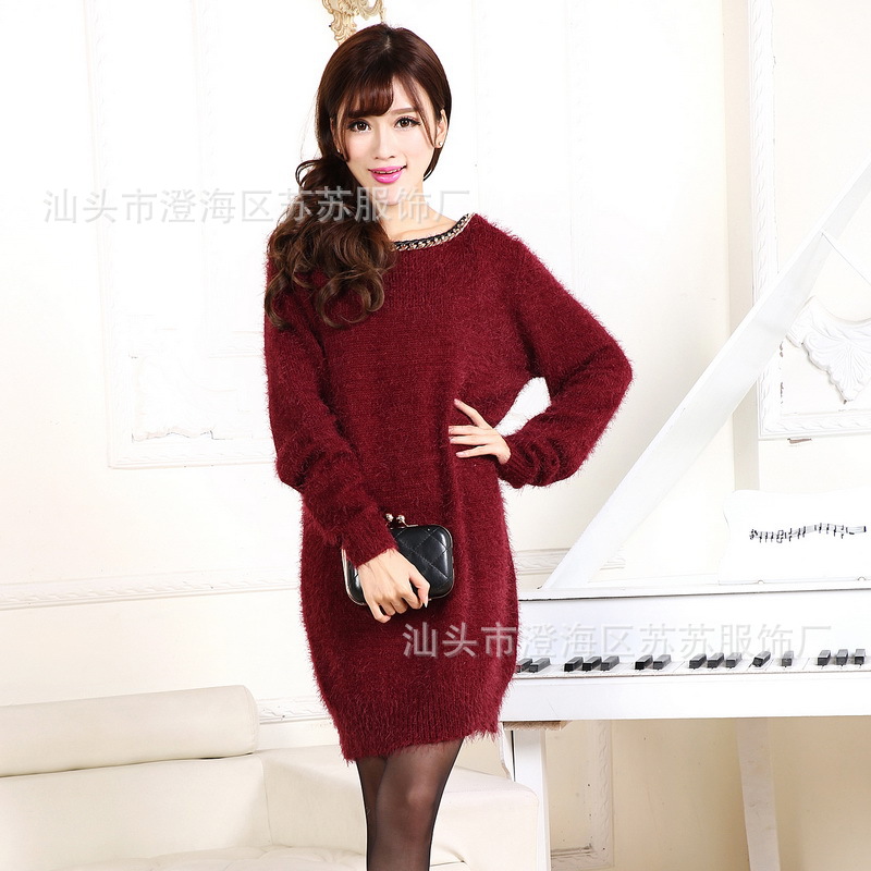 【susu毛衣】新秋冬鏈條馬海毛中長(zhǎng)款百搭套頭打底女款包臀連衣裙 /