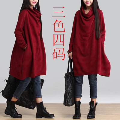 2015秋冬新款文藝堆堆領(lǐng)寬松連衣裙 /