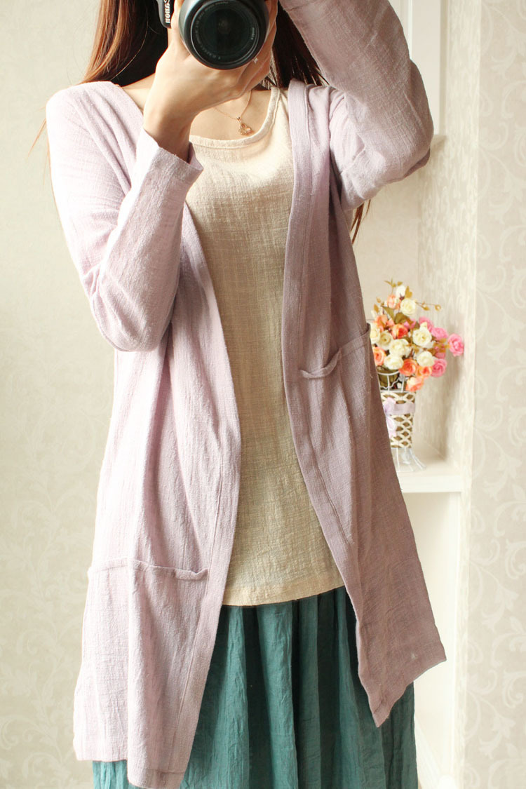 初秋新款小清新文藝范森女系簡單寬松顯瘦款水洗棉麻女裝開衫襯衣 /