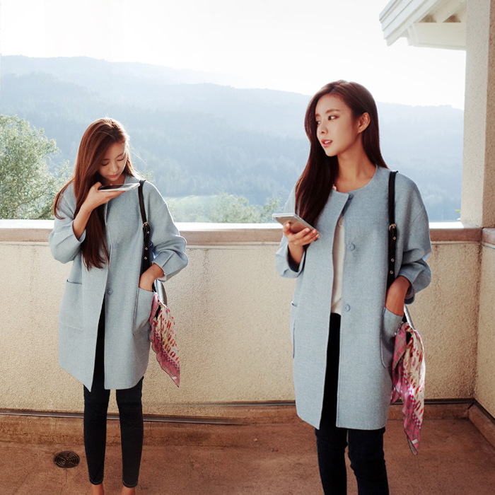 2014秋冬季新款韓版小香風(fēng)雙排扣毛呢外套女裝羊毛呢子大衣 /