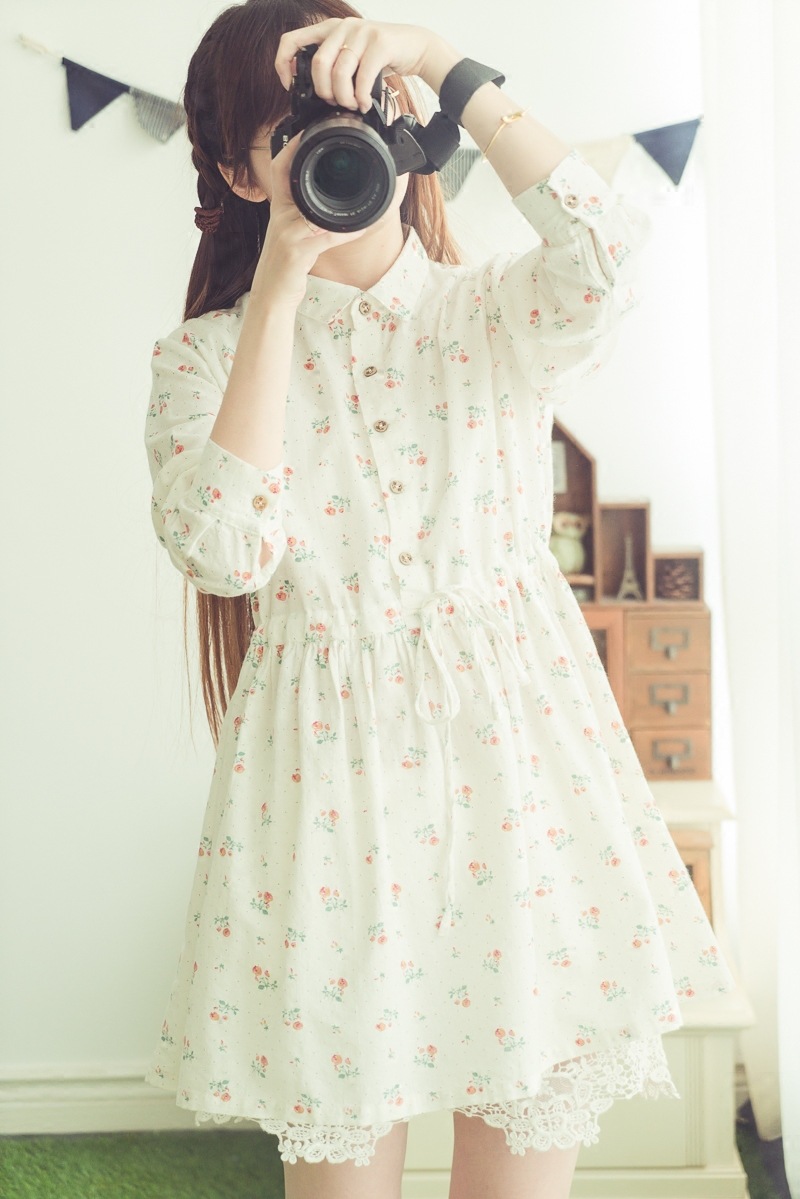 日系森女風清新碎花寬松收腰棉麻長袖連衣裙 2015秋季新款A(yù)15243 /