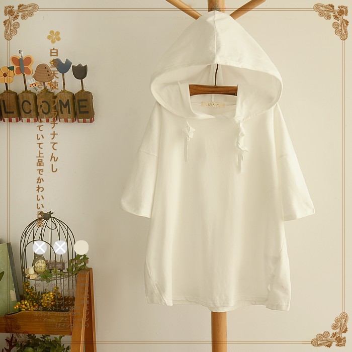 日系原宿簡潔系帶連帽寬松純色棉質(zhì)中袖T恤 秋季新款A(yù)15207 /