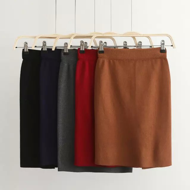 韓國代購復古冰絲針織半身裙春裝包裙歐美高腰包臀裙子開叉中裙秋 /