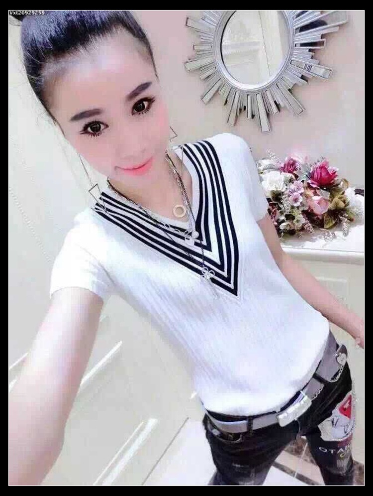 歐洲站2015早秋新款女時尚黑白條V領修身顯瘦針織衫百搭小衫 潮 /